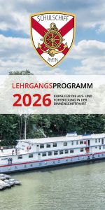Terminübersicht 2026 Kursangebote Anmeldung Kursangebote Unser Fortbildungsprogramm umfasst folgende Kurse: Erwerb von PatentenEU-Befähigungszeugnis (Unionspatent) Radarlehrgang – Theorie und Praxis Gefahrgut/ADNADN-Sachkunde „Basis“ / Grundkurs mit Stabilität ADN-Sachkunde Basis / Wiederholungskurs ADN „Chemie“ / Aufbaukurs ADN „Chemie“ / Wiederholungskurs ADN „Gas“ / Aufbauschulung ADN „Gas“ / Wiederholungskurs Gefahrgutbeauftragte/-rGrundschulung Fortbildungsschulung – Erste Hilfe-Lehrgang – UKW-Sprechfunklehrgang – Powertraining am Simulator – Individuelle Schulungsgestaltung Lehrgangsprogramm Hier finden Sie Verlinkungen zur Internetseite ELWIS der Wasserstraßen- und Schifffahrtsverwaltung: – Prüfungstermine 2026 – Antragsformular auf Zulassung zur Prüfung – Kontaktdaten für die einzelnen Standorte – die neue Binnenschifffahrtspersonalverordnung – BinSchPersV – Neuerungen im Patentwesen, insbesondere auch über den neuen Ablauf der Schiffsführerprüfungen.